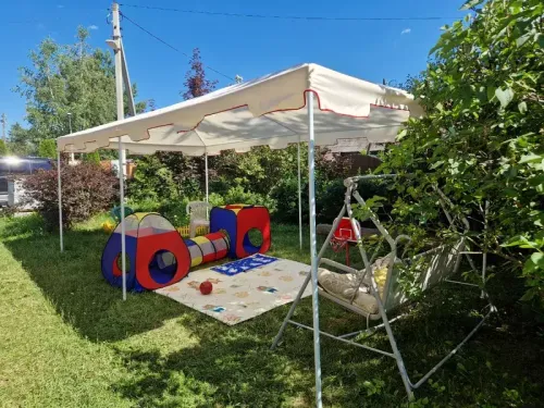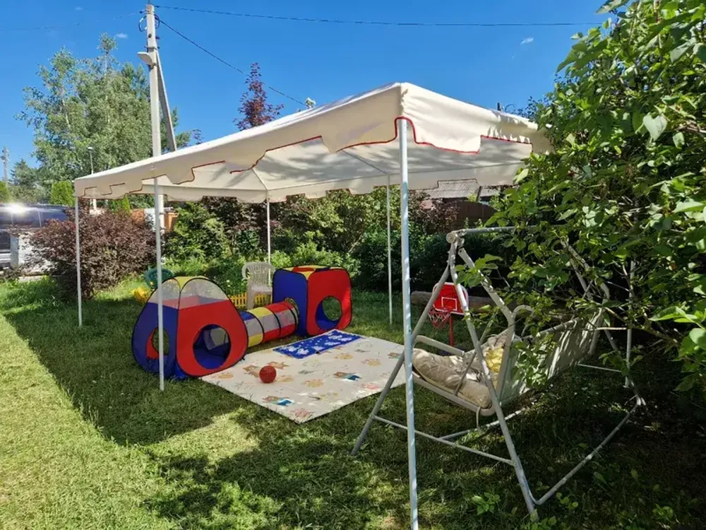 Защита от Солнца: Крыша тента обеспечивает надежную защиту от солнечных лучей, позволяя наслаждаться отдыхом на открытом воздухе, не беспокоясь о вредных воздействиях ультрафиолетового излучения.
