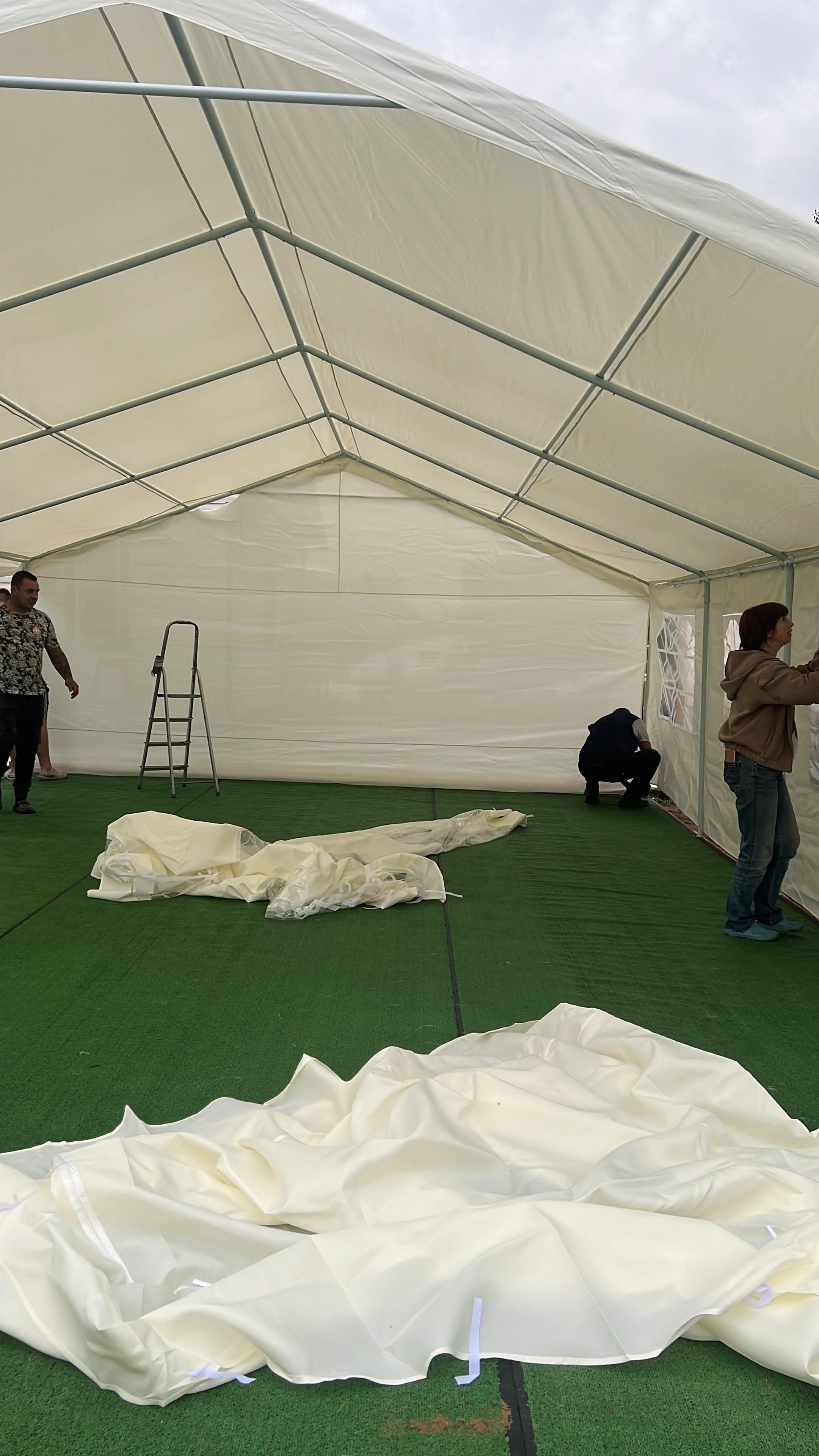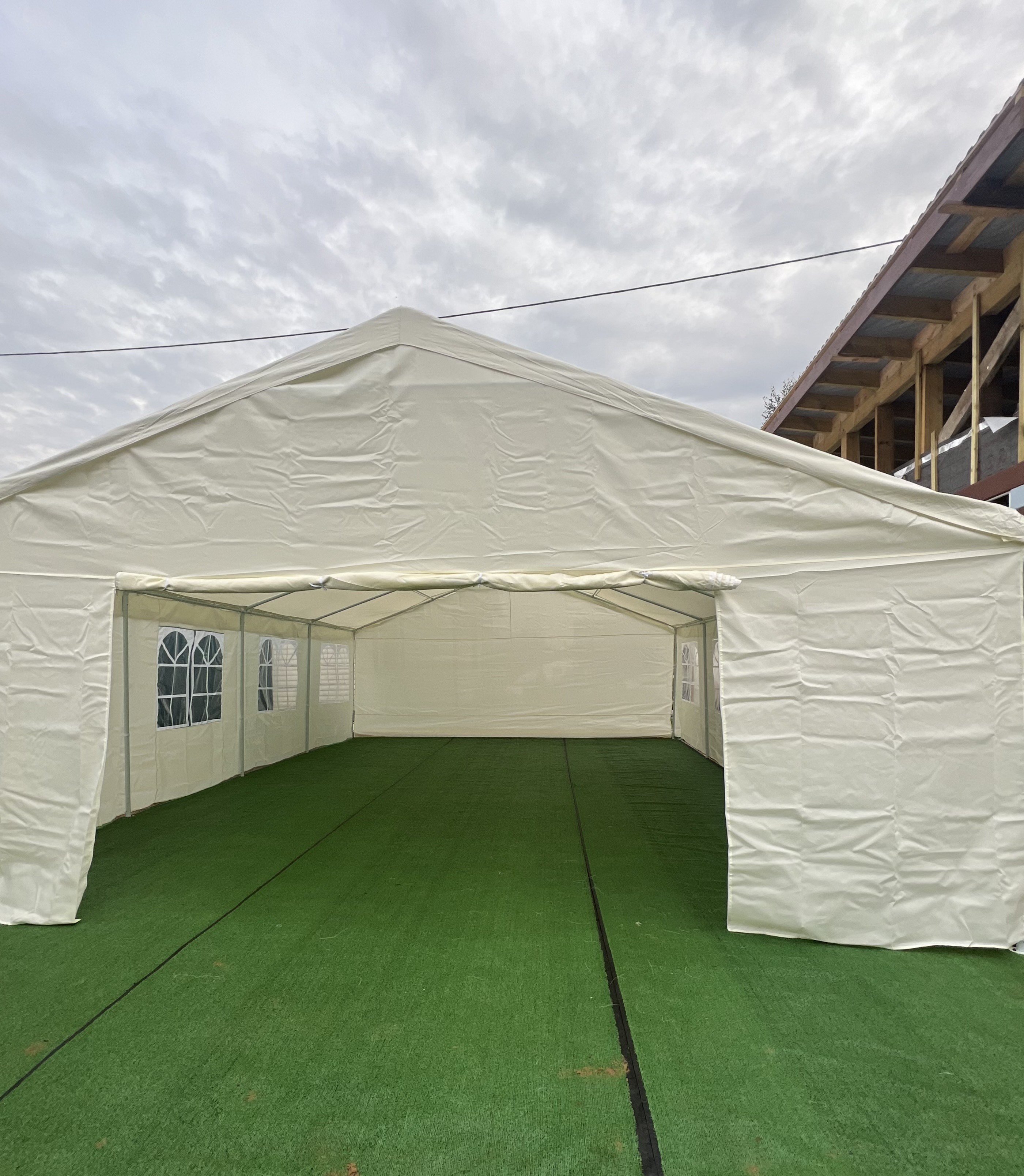 - Торжественный вид: Светло-бежевый (молочный) цвет тента выглядит нарядно и празднично, служа идеальным фоном для фотографий.