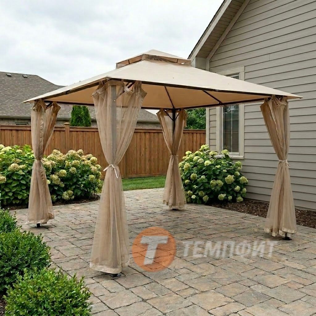 Представляем новинку — стильный шатёр для дачи Green Glade 72403. Эта модель сочетает в себе надежность стального каркаса и визуальную легкость классического бежевого тента. Площадь 9 кв. метров (габариты 3х3 метра) делает ее идеальной садовой беседкой для комфортного размещения обеденной зоны или места для отдыха на свежем воздухе.