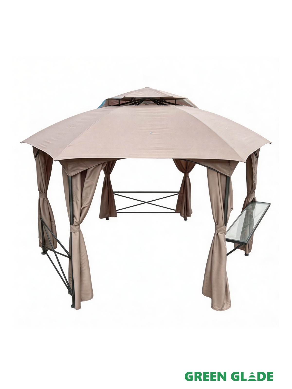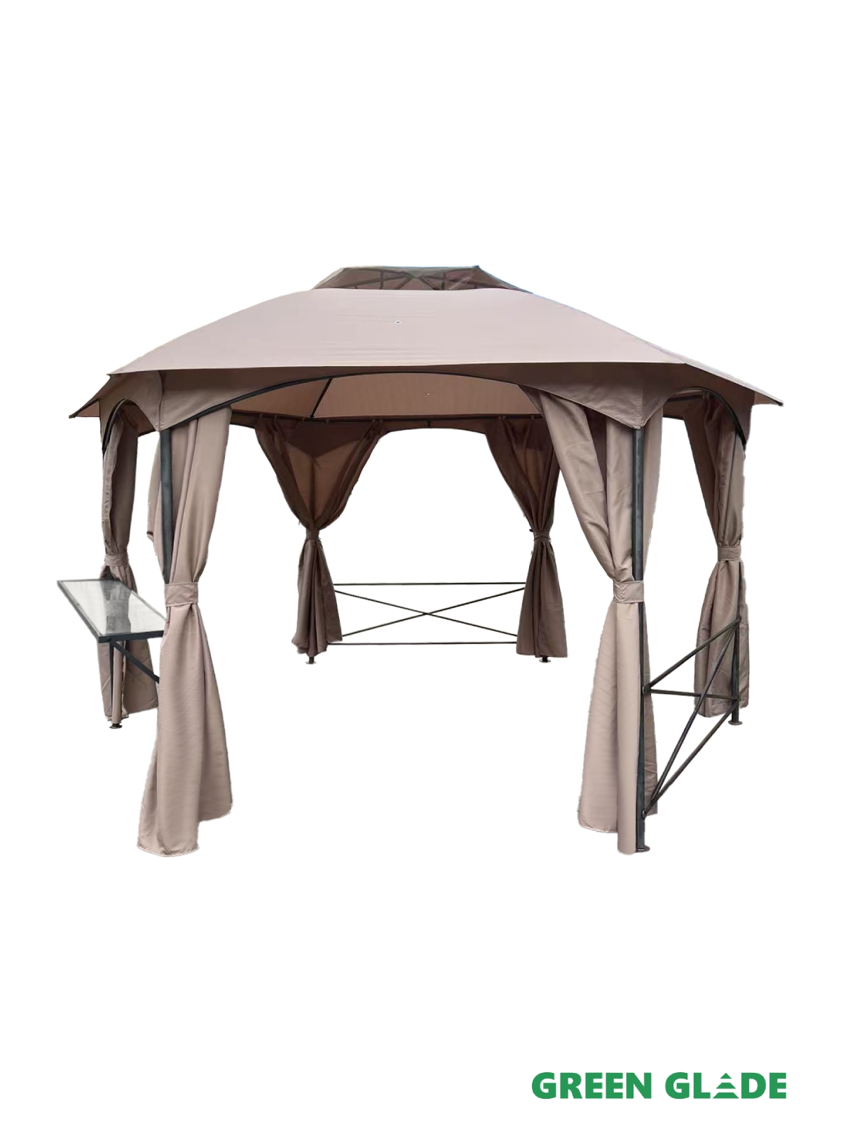 Стальная труба с порошковым покрытием: опоры - 19х19х0,6 мм, верх - 20х20х0,8/18х0,5 мм, ограждение - 18х18х0,5 мм