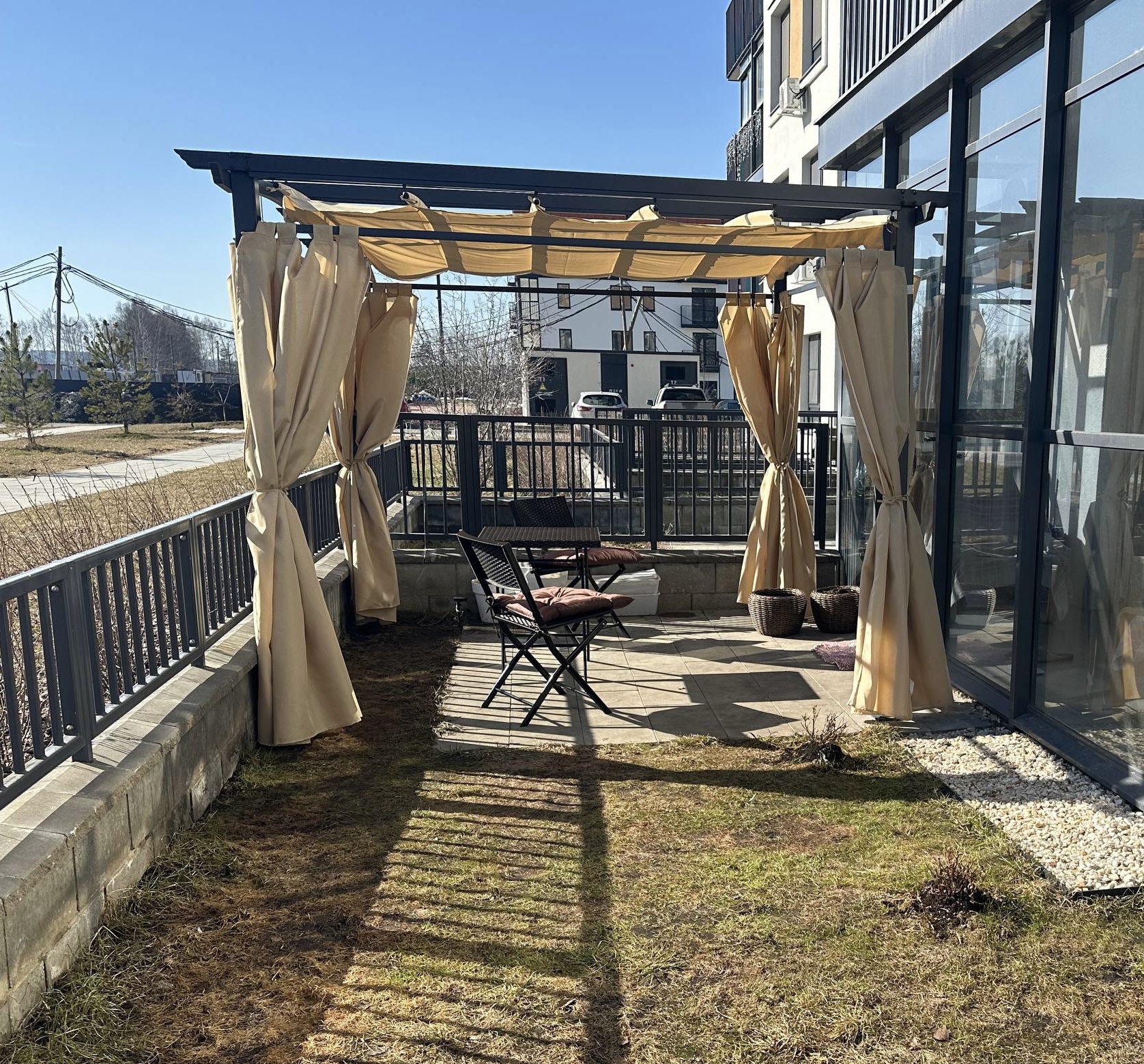 Она спроектирована для стационарной установки на весь летний сезон. Стильный дизайн и элегантный бежевый цвет сделают ее главным украшением вашего участка, создавая роскошную и комфортную лаунж-зону площадью 9 кв. метров.