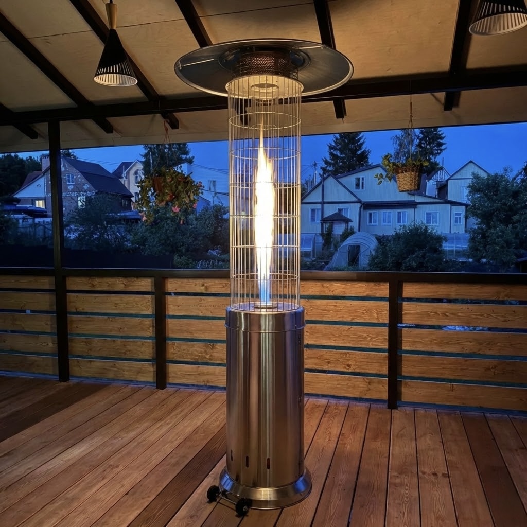 Корпус из нержавеющей стали — это гарантия того, что ваш газовый уличный обогреватель для террасы сохранит свой первоначальный лоск на долгие годы. Материал устойчив к коррозии, влажности и перепадам температур, а также не боится случайных механических повреждений и царапин. Такой уличный обогреватель гармонично вписывается в современные дизайны в стиле хай-тек или лофт, украшая собой открытые веранды ресторанов, лаунж-зоны отелей и домашние патио.