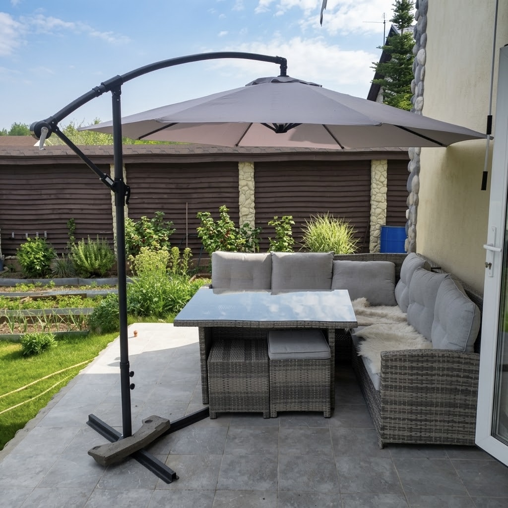 Благодаря умной конструкции, этот зонт с боковой опорой оставляет максимум свободного места под куполом. Вы можете без помех разместить под ним шезлонги для загара, полноценную обеденную группу или безопасную игровую зону для детей. Механизм с надежной лебедкой делает процесс открытия купола невероятно легким и плавным. Кроме того, возможность регулировки угла наклона позволяет адаптировать тень под любое положение солнца, что делает его идеальным выбором, если вам нужен функциональный летний зонт для длительного отдыха.