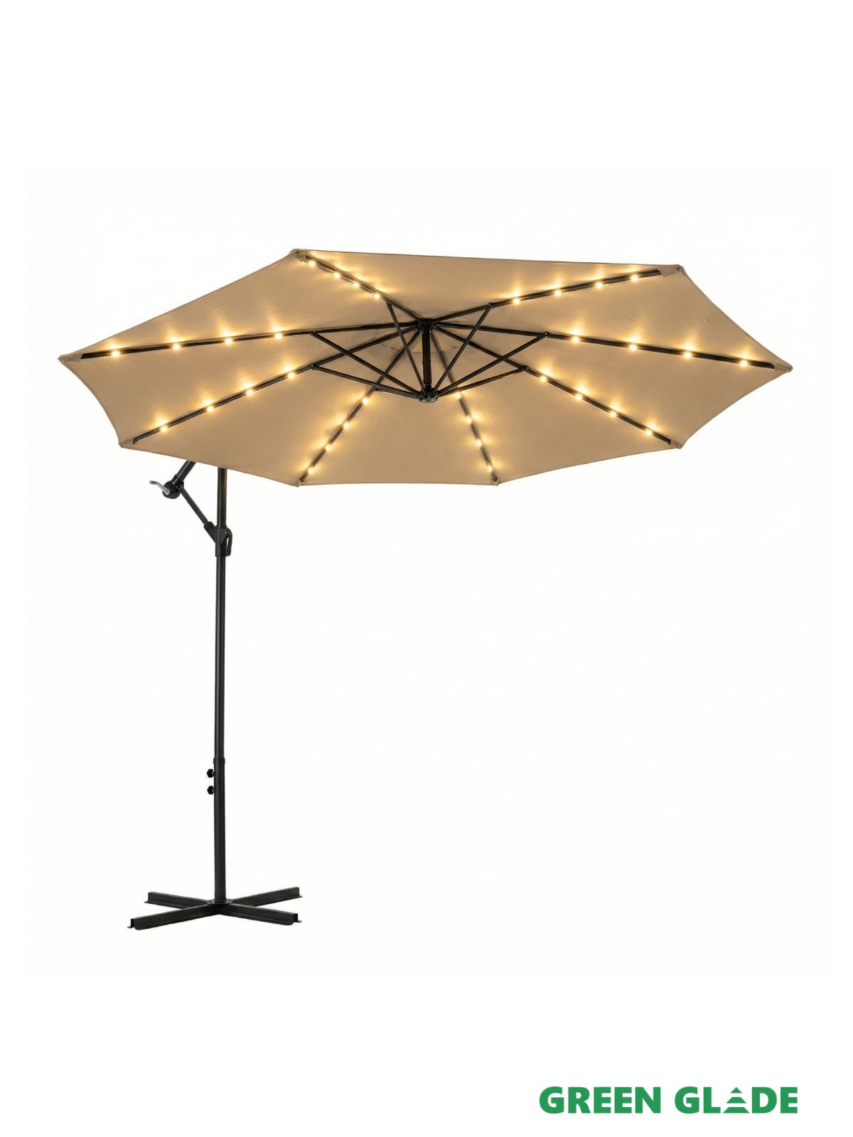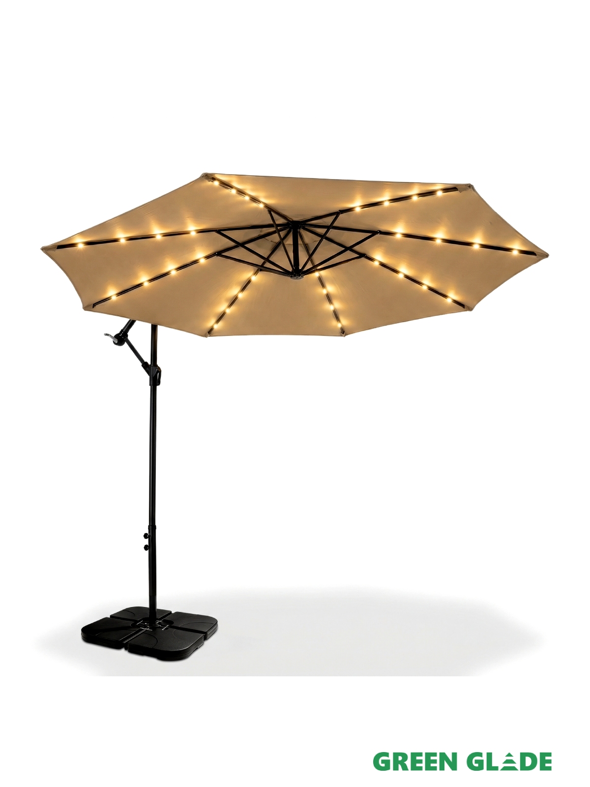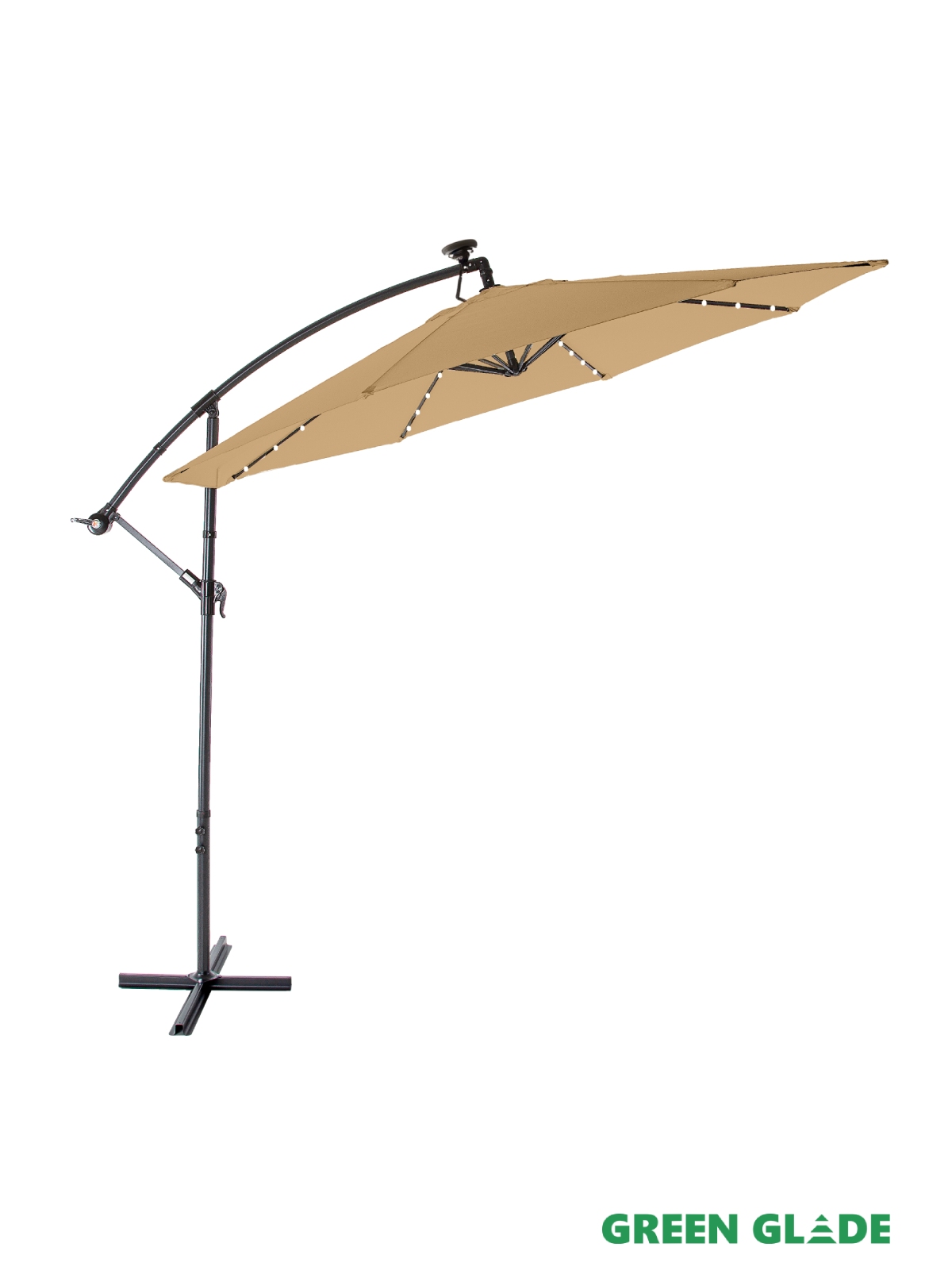 Большой садовый зонт Green Glade 8013 – незаменим для отдыха на даче, загородном участке и около бассейна. Он защитит вас и ваших детей от яркого солнца и создаст комфортную тень. Купол зонта легко открывается с помощью лебедки. Благодаря боковому расположению стойки под куполом можно установить любую пластиковую мебель: от шезлонга до обеденного стола. Зонт оснащен LED подсветкой с питанием от солнечной батареи.